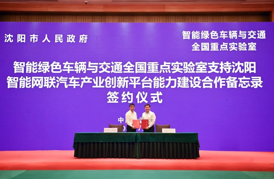 沈阳市人民政府与智能绿色车辆与交通全国重点实验室举行智能绿色车辆与交通全国重点实验室支持沈阳智能网联汽车产业创新平台能力建设合作备忘录签约仪式。