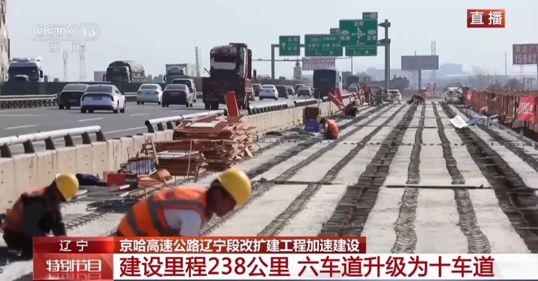 G1京哈高速公路是进出东北地区的重要通道。京哈高速自2000年全线通车以来,车流量不断增加。尤其是辽宁绥中到盘锦段已经不能满足通行需要。去年8月,辽宁省启动了京哈高速公路辽宁绥中至盘锦改扩建工程,计划将原有的双向六车道改造升级为双向十车道。在这个假期里,施工人员仍然坚守岗位,加紧建设。