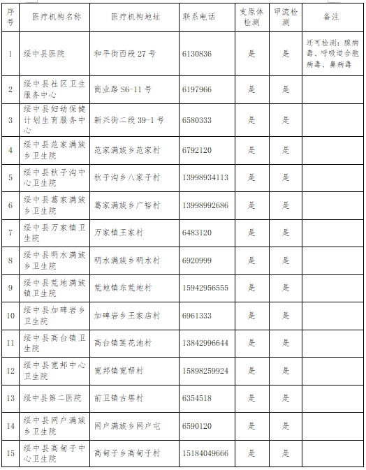 为方便群众就医,精准治疗,对症下药,现将绥中县具备支原体、甲流检测能力的医疗机构信息公布如下,以方便群众就近就诊和检测,实现早发现、早区分、早治疗、对症下药、科学合理用药,避免盲目用药。