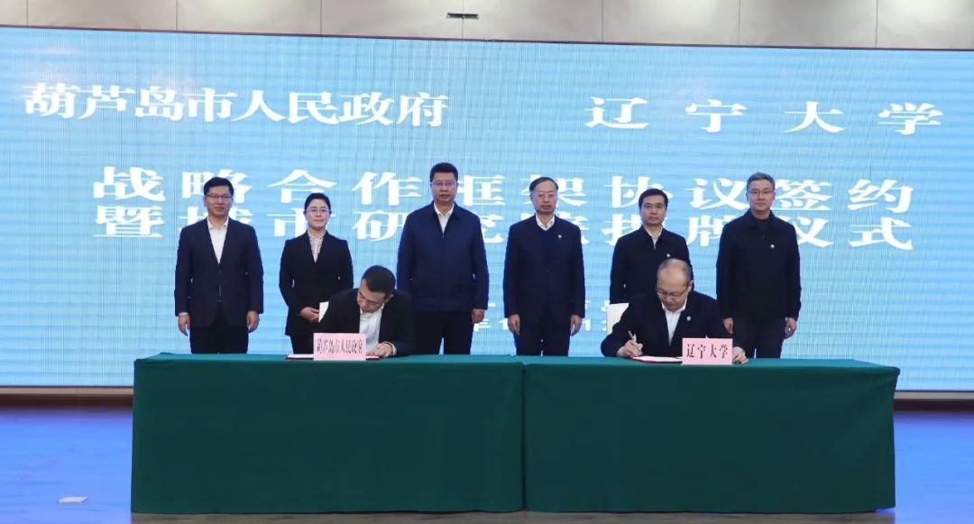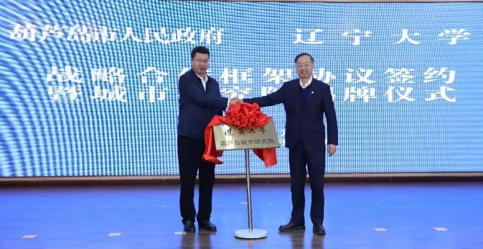 仪式上,刘辉代表市政府与辽宁大学签署了战略合作框架协议。何志勇、潘一山共同为辽宁大学葫芦岛城市研究院揭牌。