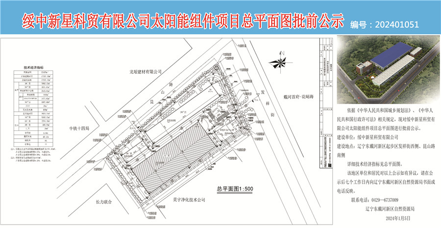绥中新星科贸有限公司太阳能组件项目总平面图批前公示