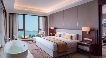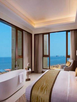 酒店客房平均面积约45平米,客房均配备宽大落地窗,部分客房三面设落地窗,可270度观赏海景。客房精选国际豪华品牌卫浴与健康床垫,均配有热带雨林花洒与双人浴缸、43寸液晶电视及高速wifi网络。同时也为酒店住客提供商务中心、行政酒廊、停车、专职行李员、当地旅游信息咨询等贴心服务。